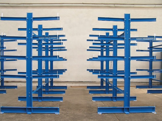 Regály jsou tvořeny sloupy z ocelových profilů IPE a konzolami, připevněnými pevnostními šrouby. Konzoly lze vybavit vyjímatelnými zarážkami proti odvalu, pro zajištění uloženého materiálu proti sesunutí. Stabilita regálu je zajištěna křížovými vzpěrami. Regály se kotví do podlahy.