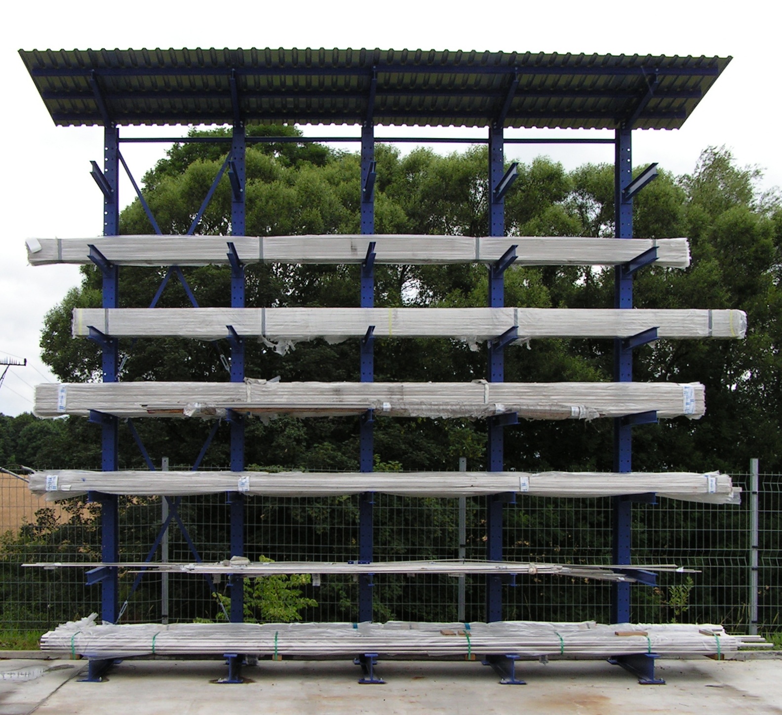 Skladování dlouhých tyčí, trubek, hranolů, desek, ale také plechů a velkoplošných materiálů.